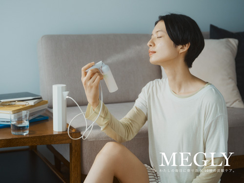 パッとしない朝も、崩れそうな夜も毎日変化する素肌に寄り添い、整ってゆく。[MEGLY]は炭酸×成分の微細ミストで届ける*土台スキンケア。毛穴より、はるかに小さな粒子「HCCA(ハッカ)**」によって高濃度炭酸とスキンケア成分を角層すみずみまで届けます。新製品デバイス不要のミスト化粧水「CYCLE ZERO LITE」リニューアルした「GLOW C+」、4月15日(水)発売「炭酸シャンプー」もお試しいただけます。