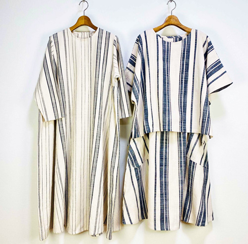 遠州織を中心とした天然素材の生地を使って風合いのある洋服を製作しております。今春は、ストライプや花柄を多めに取り揃えました。この機会にぜひ、お手に取ってご覧ください。