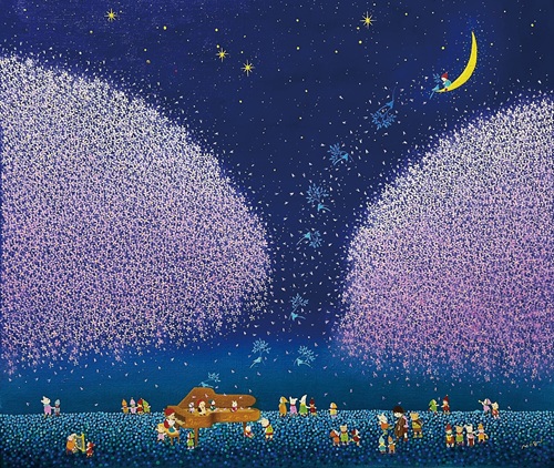 小画廊では、美しい銀河と平和な地球を未来の子供たちに渡せたらという願いをこめて、心温まるほのぼのとした夢の世界を描いている作品を展示販売いたします。