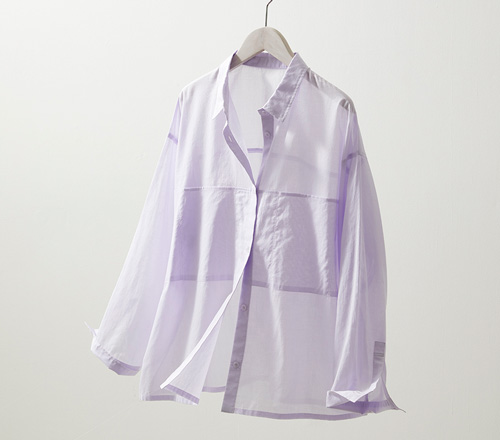 春のトレンド、ほのかに透けるシアーアイテムを品よく着ていただく大人のデザイン。綿100%で羽織りとしても活躍します。