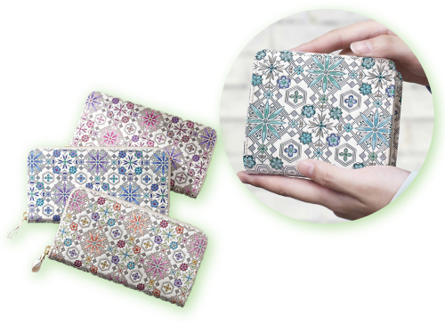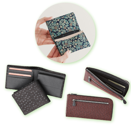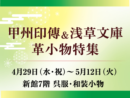 やわらかい鹿革に漆で文様をつける甲州印伝と、真っ白になめした牛革に色彩豊かな文様をあしらった浅草文庫の財布やスマホケースなどの革小物を取り揃えています。ぜひこの機会にご来店くださいませ。