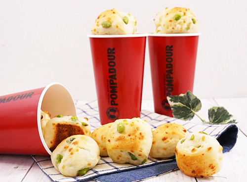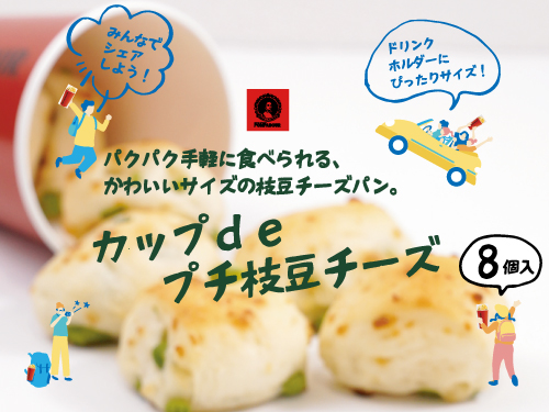 春の行楽にぴったりのパンが2026年4月25日(土)より販売します。もちっとやわらかい生地に枝豆とゴーダチーズを練り込んだ枝豆パン。ひとくちサイズにカットしてカップに入れました。カップはドリンクホルダーにピッタリサイズ!みんなでシェアして楽しもう!