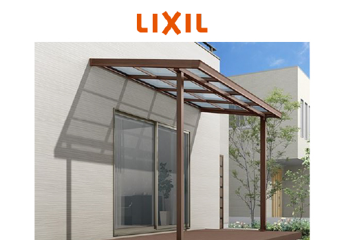 シュエット、テラスタイプ(壁付納まり)2間×6尺、ロング柱、通常ポリカ屋根として