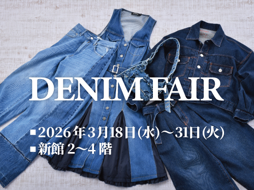 新館2~4階対象ショップでは、この夏おすすめのデニムスタイルをご紹介いたします。春夏に心地よく着られる軽やかな素材や、美しいシルエットにこだわったおすすめデニムが揃いました。カジュアルにもきれいめにも活躍する一着を、この機会にぜひお楽しみください。