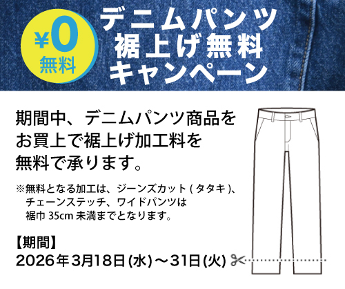 期間中、デニムパンツ裾上げ無料サービス!