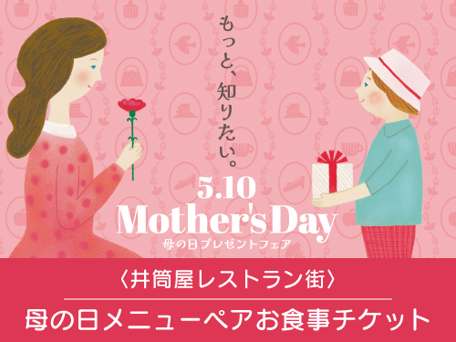 〈井筒屋レストラン街〉では母の日プレゼントとして〈母の日ペアお食事チケット〉をご準備いたしました。母の日のランチタイムに是非、各ショップの味をご賞味くださいませ。