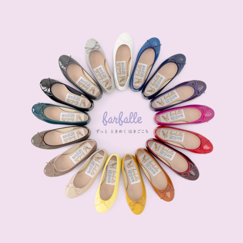 「ずっと ときめく はきごこち」をお客さまにお約束する、神戸生まれのバレエシューズブランド〈ファルファーレ〉。たくさん集めたくなるカラーバリエーションや、1日中履いていてもときめくはきごこちで、世代を超えてお使いいただけます。