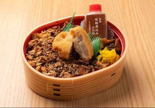 鯖の煮崩れした部位を中心に使用しています。煮崩れした部位は脂がのっており、柔らかく美味しい部分です。下には海苔とおかかが敷き詰められており、さっぱりで飽きない構成に。上には蓮根の挟み揚げがのっている煮魚少年オリジナル「のり弁」。お手軽で、お子様からご年配の方までお楽しみいただけます。特製の味噌煮込みのたれをかけてお召し上がりください。