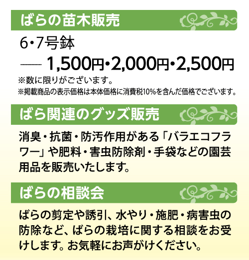 ばらは「ばら展」開催期間の前後に見頃を迎えます。 |