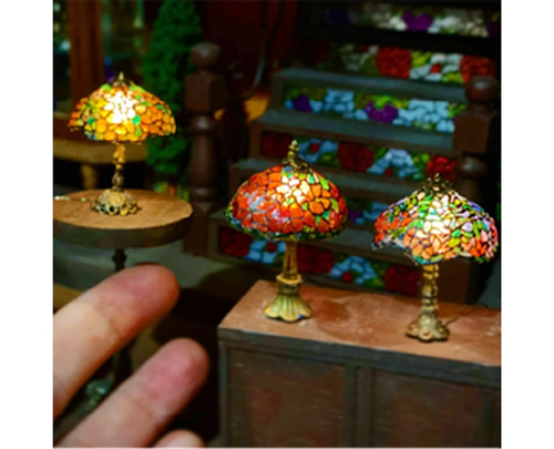 ミニチュアで表現するデスクランプシェードが人気。LED照明が付く作品も。