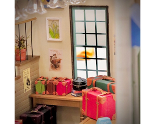 本革を使ったトランクやバッグなど、本物の素材を使うことを心がけ、質感にもこだわったミニチュアを制作。