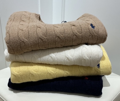 〈ポロ ラルフローレン〉では定番のケーブルニット。イタリア製のウールとカシミヤの混紡素材で柔らかなドレープとスリムなシルエットを実現したクラシックなクルーネックセーターです。秋口から冬までロングシーズン活躍するアイテムです。