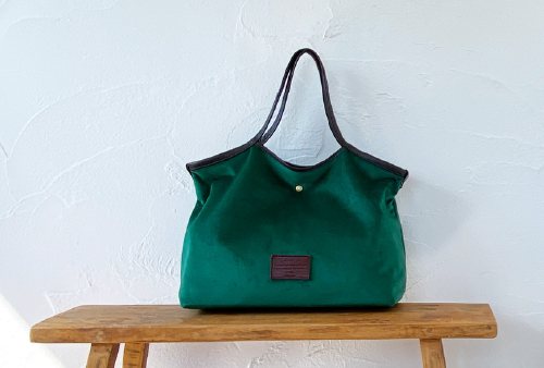 光沢をもったスペイン直輸入の素材を使用。やわらかくなめらかで手触り、軽くて使いやすいトートバッグです。