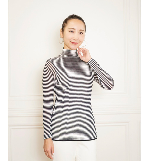 大人のカジュアルに、品よく映えるボーダー。〈天使の綿シフォン〉ならではの、やさしい肌触りと軽やかな着心地がポイント。
