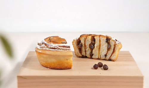 大豆焙煎粉を使用したきなこペーストと、大納言かのこを巻き込み、香ばしく焼きあげました。