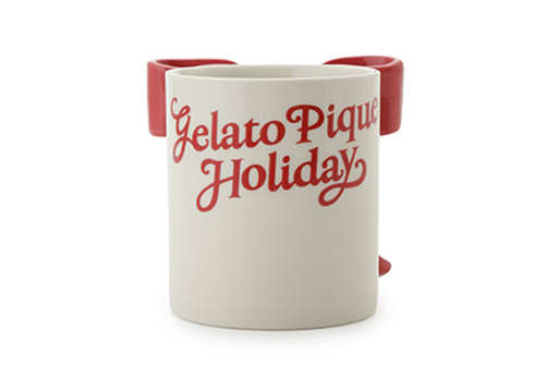 ギフトボックスにふんわりとかけた大きなリボンをイメージした、ラブリーな存在感のマグカップ。リボンの部分が持ち手になっているのがポイント。雪をイメージしたやさしいアイスブルーに赤いロゴを効かせ、おうち時間を華やかに彩ってくれます。自分へのご褒美にも、大切な誰かへの贈り物としてもオススメなアイテムです。
