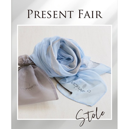 期間中、〈モラビト〉にて50,000円(税込)以上お買い上げいただいたお客様へ、「〈モラビトブラン〉オリジナルストール」をプレゼントいたします。涼しげなブルーに銀糸のきらめきが華やかなストール。首元のアクセントや冷房対策にもおすすめです。ぜひこの機会にお立ち寄りくださいませ。