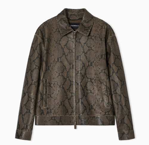 裁切りのラムナッパスキンで仕立て、前あきにジップを配したブルゾン。ユニークな工程でレザーに加工を施してからカービングのプロセスでパイソンのデザインを刻み込み、レザーに爬虫類独特のうろこ模様を描き出しています。その後タンブル加工を施し、動きのある自然な風合いに仕上げています。ぜひこの機会に店頭でご覧くださいませ。