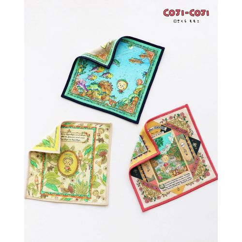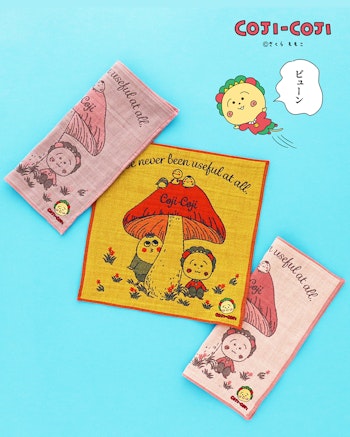 タオルより薄くてコンパクトで有りながら、吸水性も良い3重ガーゼのハンカチーフ。コジコジと次郎、トミー、テル子、カツブーが、ゆったりくつろぐほのぼのとしたデザインと、コジコジ、次郎、コロ助が「挨拶をしている、日常のワンシーンを表現した可愛らしいデザインの2柄を展開します。右下にはコジコジの刺繍をあしらい、さりげないアクセントに。使うたびに日常のちょっとした癒しを感じられる一枚は、お子様から大人まで幅広くお使いいただけます。