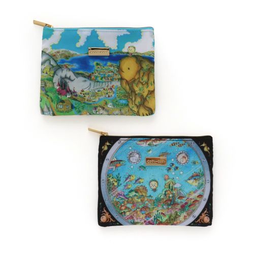 扉絵のメルヘンの国の全景イラストが大胆で印象的なデザインと、扉絵のアクアリウムのデザインの2柄を展開。背面にもポケットが付いており、シンプルだからこそ嵩張らずに使いやすいポーチです。化粧ポーチをコンパクトに持ち歩きたい人、カードやお薬など細々とした小物を持ち歩く人にもおすすめです。