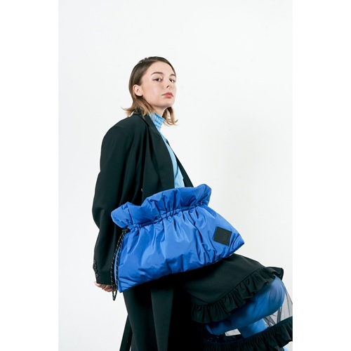 中綿入りナイロン製バックにドローストリングを施すことにより、ショルダー・手持ち・クラッチバックとご自身の好みの形で使用して頂けるのが特徴です。