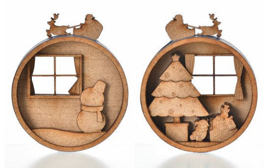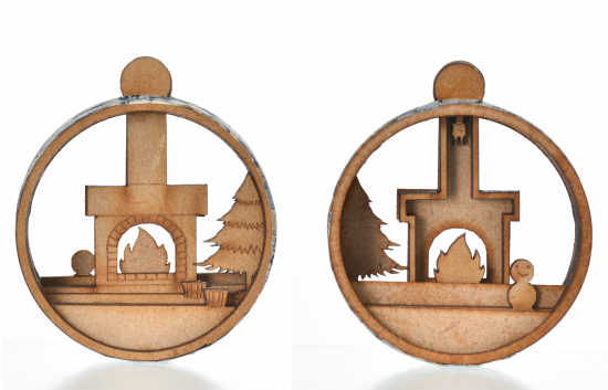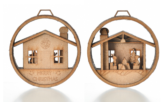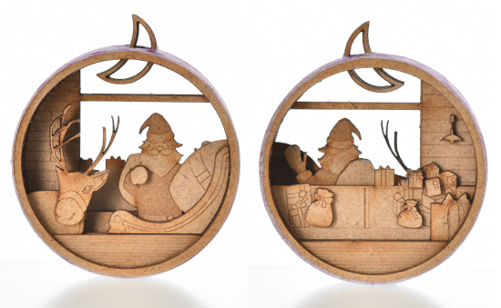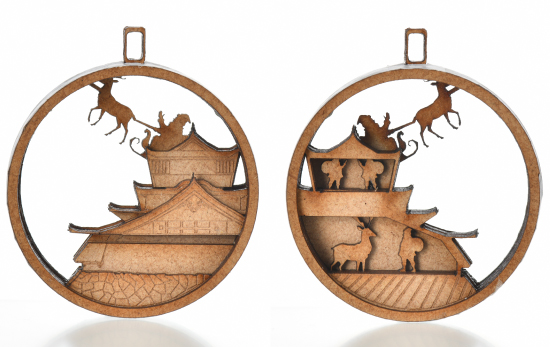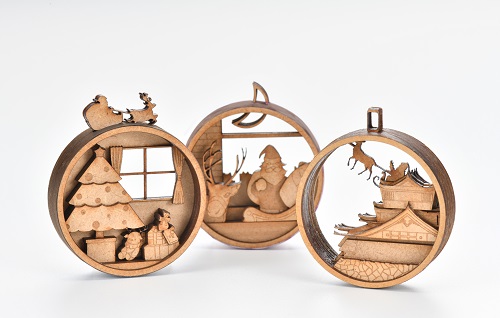 薄い木の板を11枚重ね貼り合わせると奥行きのあるクリスマスシーンが浮かび上がります。表裏両面で違うデザインが楽しめるオーナメントを作ってみませんか? 森林保全に取り組む「京築のヒノキと暮らすプロジェクト」とコラボして制作した井筒屋オリジナルクリスマスオーナメントです。