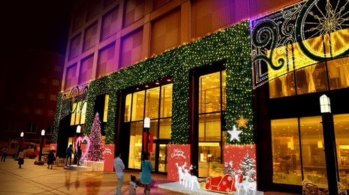 毎年好評のクリスマスイルミネーションが小倉井筒屋を優しく包みます。トナカイやハートのオーナメントなどフォトスポットもご用意。