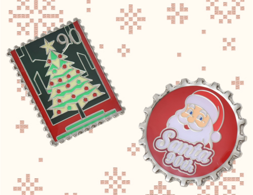 クリスマスをモチーフにした井筒屋オリジナルピンバッジを販売。収益金は全額、日本赤十字社を通して寄付いたします。