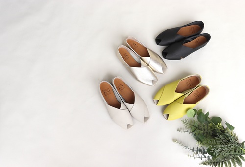 ソフトレザーが優しく甲を包むオープントゥシューズ。