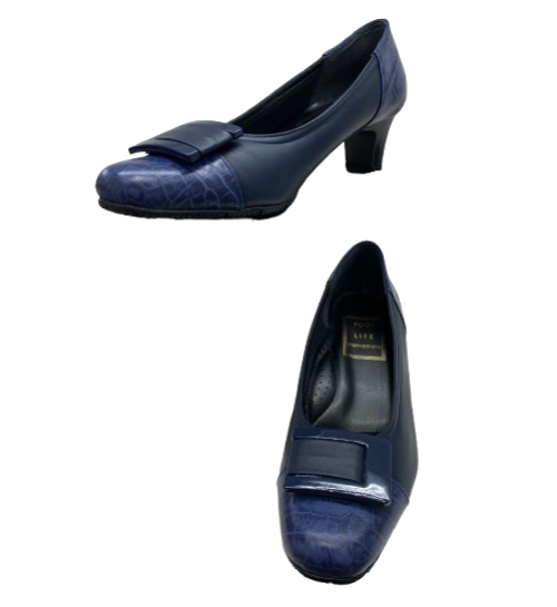 広めのワイズを大きなバックルをつけることでカモフラージュし、足先と踵部分に配置したサイドと同系色のラックスクロコでおしゃれと歩きやすさ、疲れにくさを両立しました。