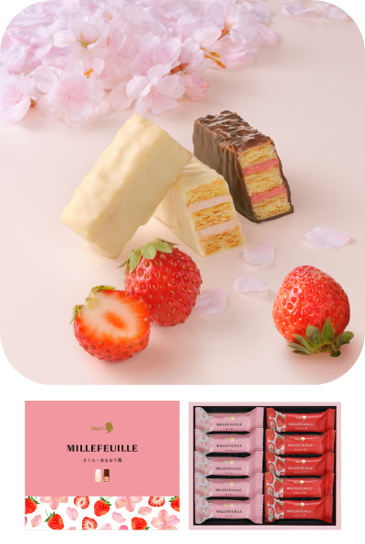「さくら」と「あまおう苺」、2種類の春の味わいのミルフィーユです。