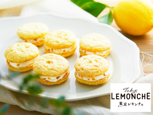 ふわっと軽いパフのようなレモン生地と、なめらかで甘酸っぱいレモンクリーム、おまけにほろ苦いレモンピールのアクセント。レモンの香りと、口の中でやさしくとけあう心地よい食感にこだわった、さわやかなレモンクリームサンドです。