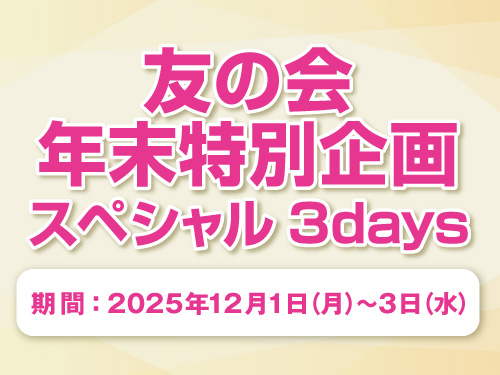 井筒屋では、友の会冬コースの満期に合わせて「友の会 年末特別企画 スペシャル3days」を開催!期間中の特別ご奉仕品や割引など全館で取り揃えております!お見逃しなく!!!