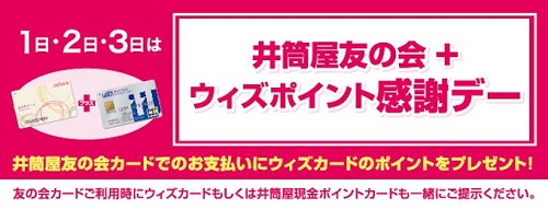 友の会カードご利用時にウィズカードもしくはきららカードも一緒にご提示ください。