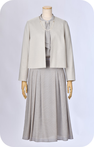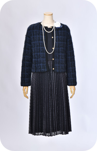 普段使いも出来る幾何学柄レースにアコーディオンプリーツを施したキレイめワンピース。カーディガン以上ジャケット未満の羽織で、今年らしいスタイリングを提案します。