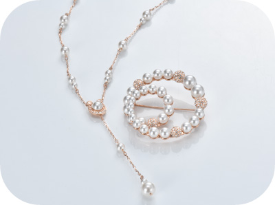 新春のスタイリングに贅沢な雰囲気を添えるブローチとY字形ペンダント。優しい色合いのローズゴールド・プレーティングとSwarovskiクリスタル・パールの華やかな組み合わせで、毎日のスタイリングにもおすすめです。ブローチは渦巻き状のシルエットが目を惹く魅惑的なデザイン。ホワイトのSwarovskiクリスタルパールとパヴェ・ビーズを組み合わせ、輝きと洗練さをプラスしました。ネックレスは、Y字形のスライド式クロージャーでフイット感を調節できます。成功をもたらす馬蹄形のセンターピースには、特別な意味合いが込められています。