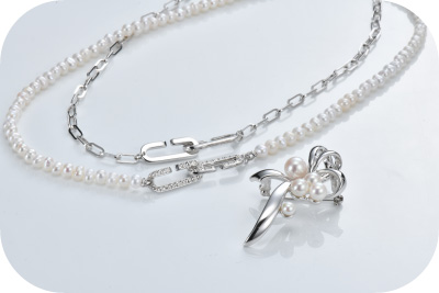 素材:合金、シルバー色メッキ、淡水パール、キュービックジルコニア