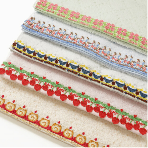 朝起きて顔を洗う…タオルは毎日、何度も使うアイテム。こんなかわいらしいレ-スが付いたタオルがあったら、日常のルーティンも楽しくなりそう!コットン100%の特殊加工を施した柔らかな糸をふんわりと織り上げています。やさしいパステルカラーとレースのカラーマッチが美しく、飽きの来ないデザインです。おそろいのスリッパとともに、パウダールームを楽しくコーディネートしてみてはいかがですか?ギフトにもとても喜ばれるアイテムです。