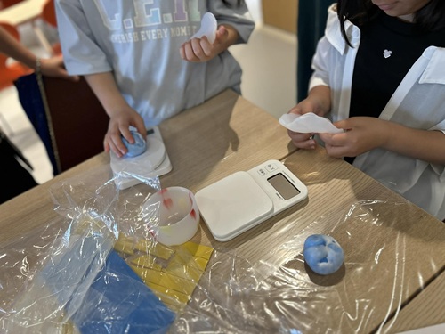 シリコンの生の材料をこねて、お好きな色のコップをお作りいただけます。