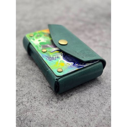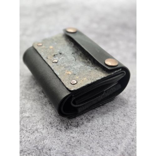 異素材を纏う一枚革、縫わず折り留める構造美と手描き表情が育つ大人の一点物ウォレットです。