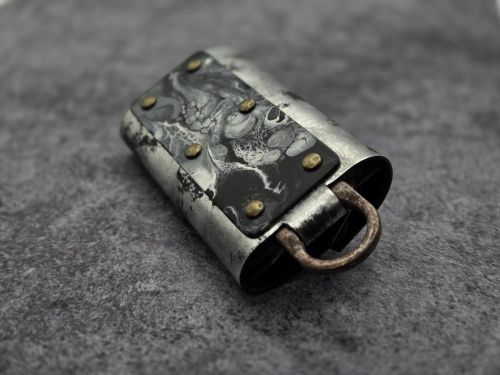 革と金属を組合わせたキーケースです。4連金具を備え手作業でペイントしたプレートが一点物のの個性を引き立てます。