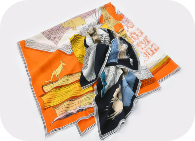 絵画のような世界観を感じるスカーフです。緻密なプリントが美しく、コーディネートに品格と遊び心をプラス。肩にかけたり首元に巻いたり、幅広く楽しんでいただけます。