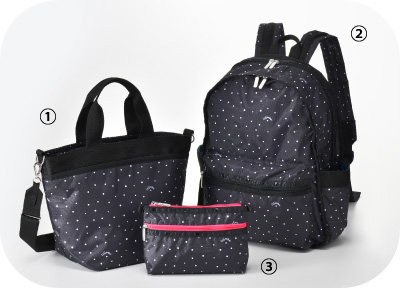 「ブリスドッツシリーズ」ブラックベース×ホワイトのドット柄デザイン。大小さまざまなドットがランダムに並び、ラフで遊び心のある印象に。シンプルなモノトーン配色でどんなコーディネートにも合わせやすく、シーズンレスで活躍します。