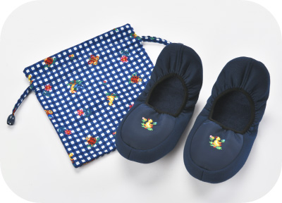 折りたたみ式で学校行事や宿泊先でも活躍する「ハイジ」の携帯スリッパです。中敷きはパイル地で仕立てることで、履き心地の良さを追求しました。ぴったり収納できる巾着もセットしているので、かさばらずに持ち運びいただけます。