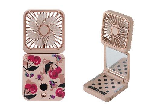 旅先でのひとときを、より快適に、より優雅に。涼みながら身だしなみを整えられる、ミラー付きのハンディファンです。観光中の手持ちスタイルはもちろん、ホテルや移動中の車内では卓上ファンとしても活躍します。