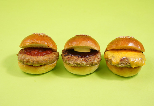 マトソース・てりやきソース・チェダーチーズ、3種類のミニバーガーが味わえる、よくばりなハンバーガーセット。