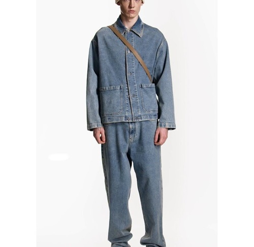 エンポリオ アルマーニ2026春夏シーズンICONカプセルコレクションの、クラシックなデザインの襟をあしらったジャケットと5ポケットジーンズ。細かいうね模様が際立ち、重さや耐久性の店でデニムに似ている丈夫なテキスタイル、ストレッチコットンのドリルで仕立てています。