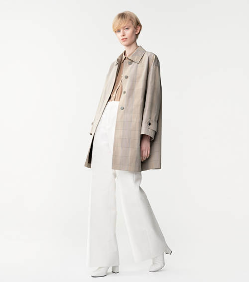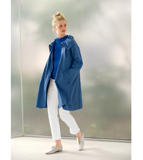 イタリアのテキスタイルメーカー「NALYA(ナリヤ)」の超高密度先染め素材です。こだわりの仕上げでコンパクト感がありながらもしっかり膨らみもあり、綿とナイロンの交織で仕立て映えのする風合いに仕上げています。今期からパターンを見直して肩を少しコンパクトにして、よりAラインに広がるシルエットに仕上げました。総裏地付きです。