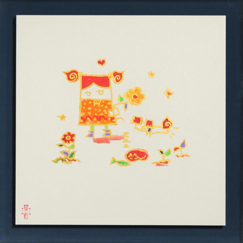 日本の古典美術を再定義・再解釈し、現代のカルチャーと融合させた作品を描く次世代注目アーティスト。生命の神秘を象徴する「螺旋」や森羅万象の繋がりを象徴する「群像図」など、ポップでデザイン性の高い作風が高い評価を得ています。活躍は絵画にとどまらず、東武鉄道のラッピング車両や鳩サブレ干支缶、デニーズのグランドメニューのデザインなど日常と芸術の境界を軽やかに越え、幅広い層から注目を集めています。是非この機会に「古家野雄紀の世界」をご高覧くださいませ。