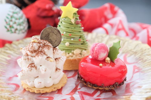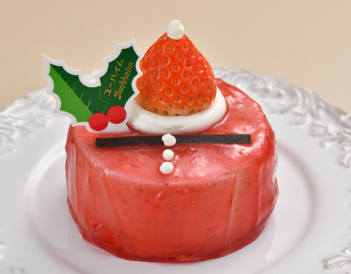 苺でサンタさんの帽子をデザインしました。ストロベリームースにバニラクリームを包み込み、ぱりぱりチョコがアクセントです。